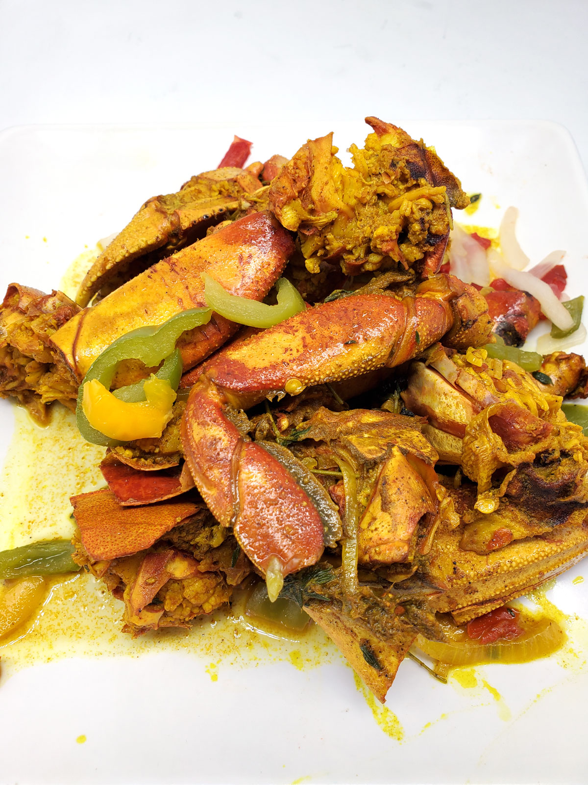 Jamaican Style curried crab perfectly seasoned with Jamaican curry and spices and cooked to perfection!